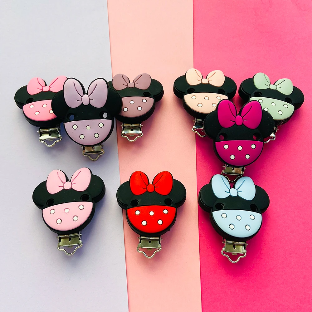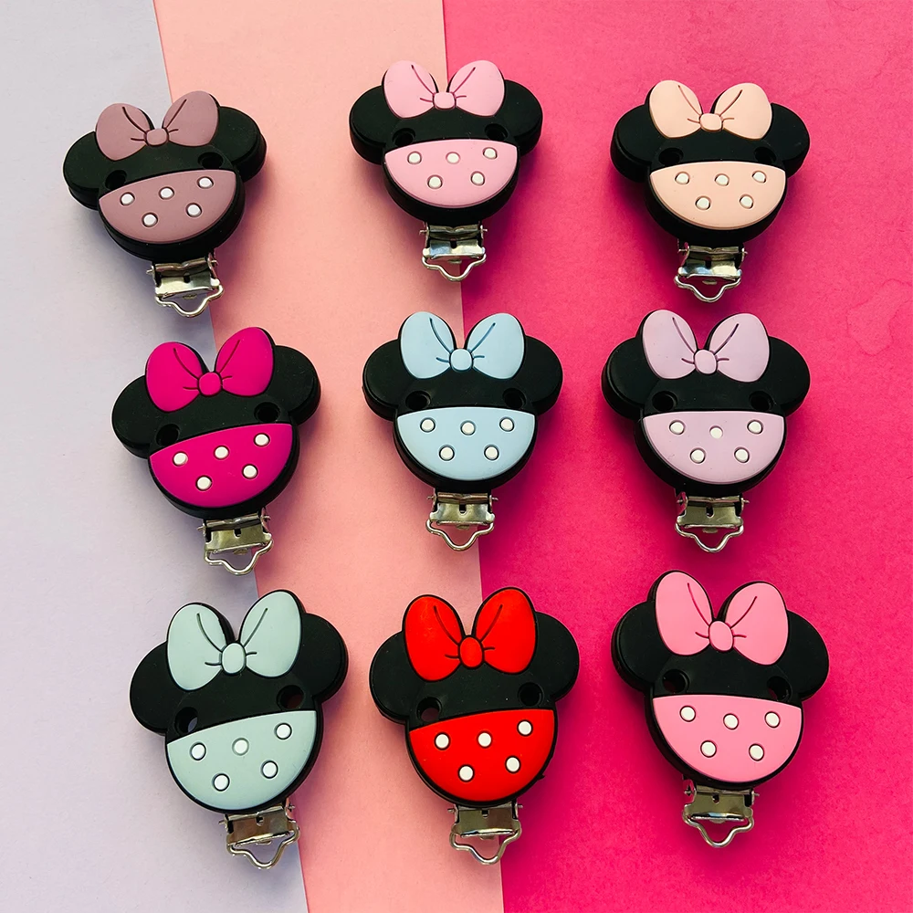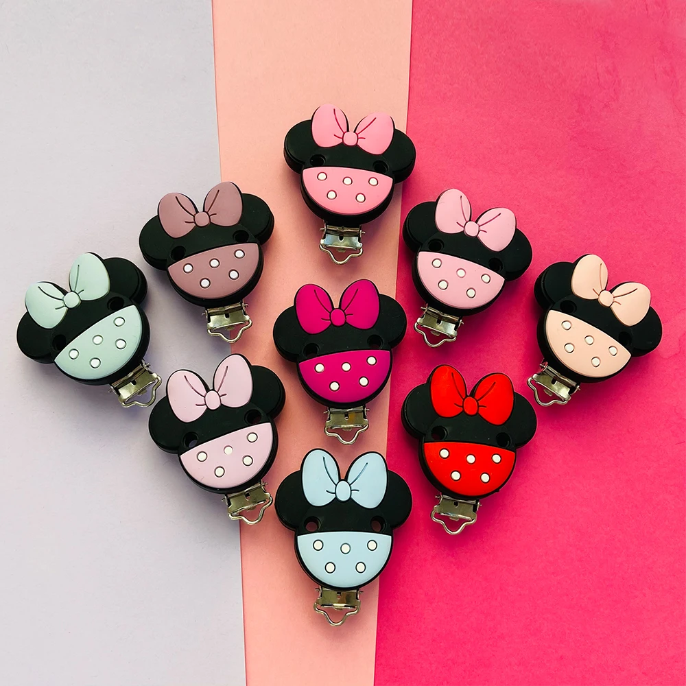 3pcs Silicone Minnie Baby Pacifer Clip Food Grade Teethers For Baby DIY Baby Soother Nursing Pacifier Chain Accessories